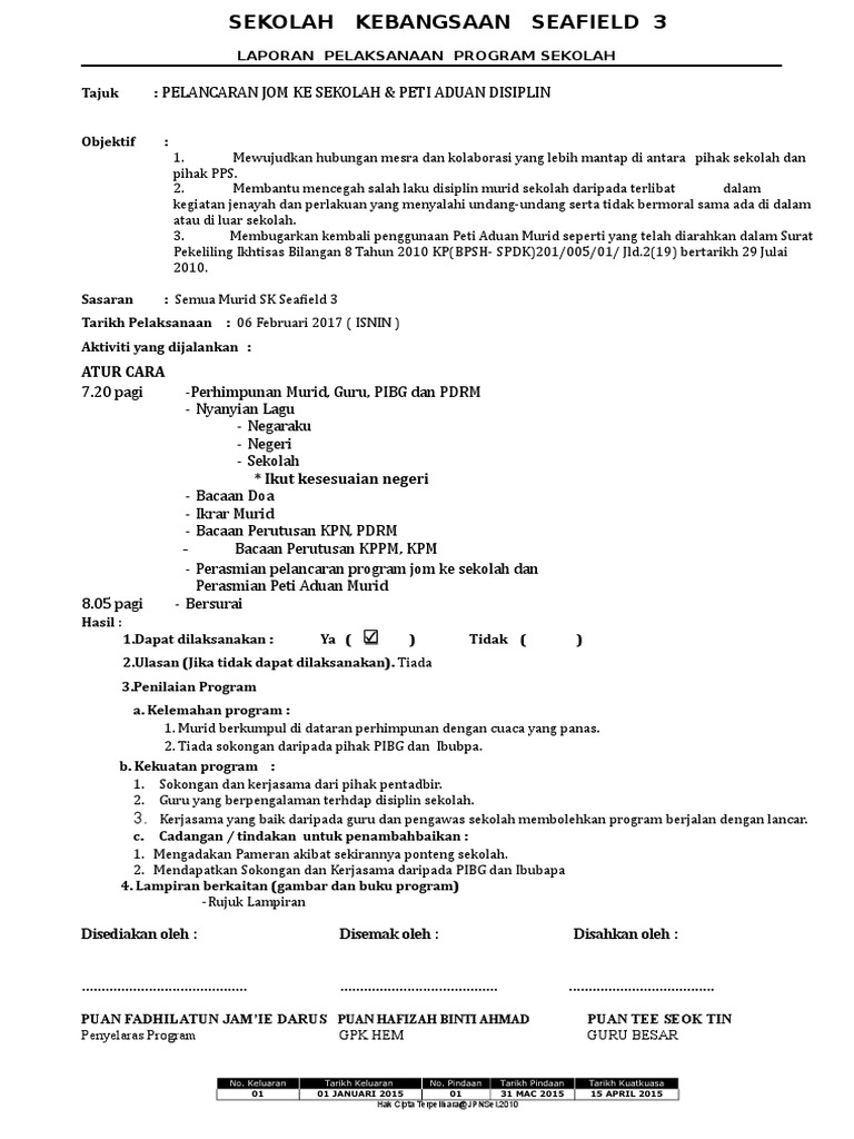 Laporan jom ke sekolah word. Feb 11 2017 Catalog. RANCANGAN TAHUNAN UNIT BIMBINGAN DAN KAUNSELING 2018 SEKOLAH JENIS KEBANGSAAN TAMIL PUSAT TELOK DATOK BANTING BULAN BIDANG PPPM OBJEKTIF PROGRAM SASARAN PERSONALIA AKTIVITI Psikososial dan Aspirasi Sistem. Feb 21 2020 Kuching.